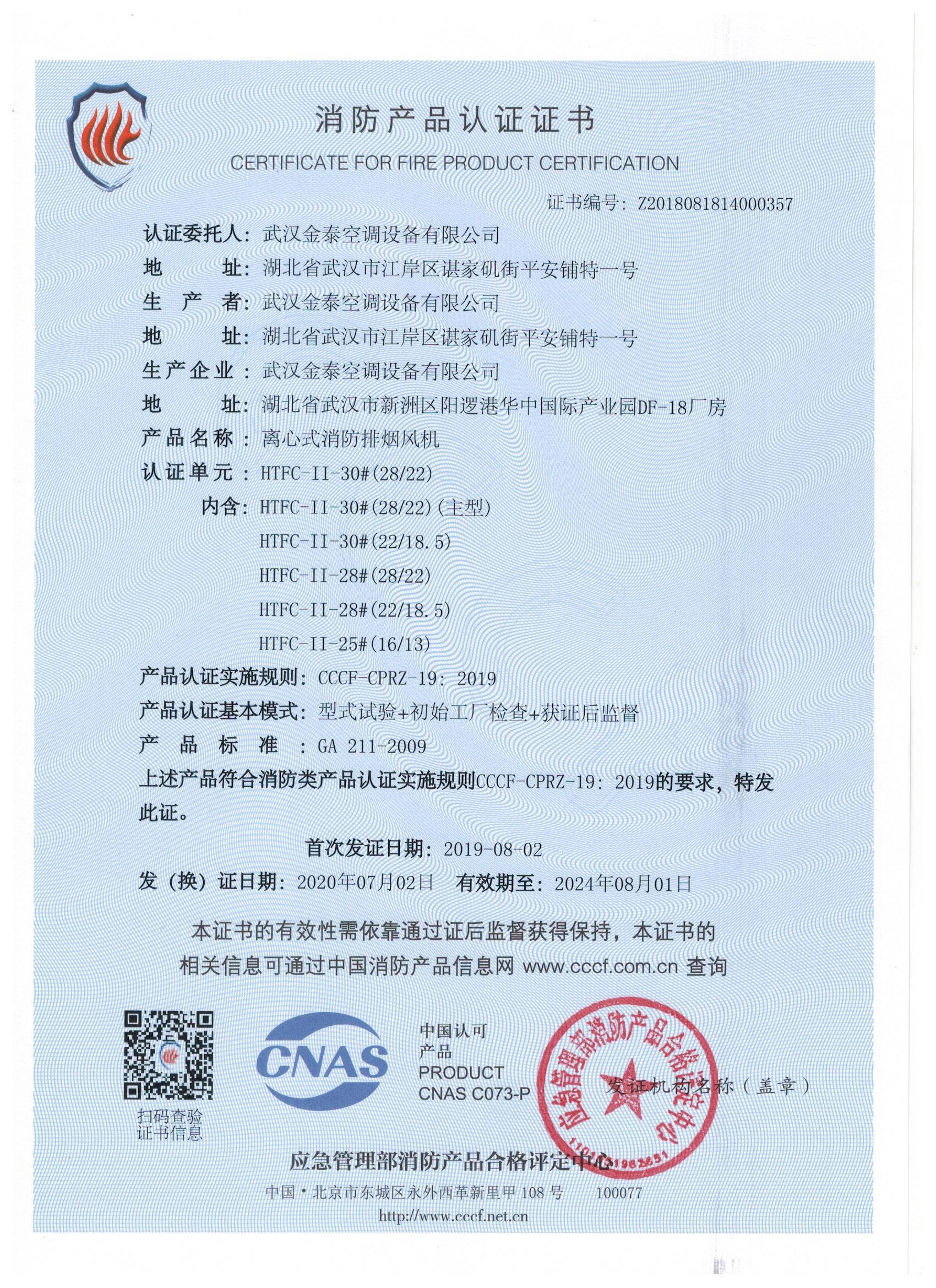 武漢金泰空調(diào)設(shè)備有限公司 是國(guó)內(nèi)長(zhǎng)期專注于民用風(fēng)機(jī)、工業(yè)風(fēng)機(jī)領(lǐng)域的標(biāo)桿企業(yè):專業(yè)生產(chǎn)消防排煙風(fēng)機(jī)系列、排煙防火閥系列、一般通風(fēng)機(jī)系列(軸流式、離心式、屋頂式、壁式、隧道式、射流式)、風(fēng)口、風(fēng)管等消防及通風(fēng)設(shè)備。產(chǎn)品經(jīng)公安部消防產(chǎn)品合格評(píng)定中心評(píng)定符合消防產(chǎn)品CCC標(biāo)準(zhǔn);經(jīng)中國(guó)合格評(píng)定國(guó)家認(rèn)可委員會(huì)認(rèn)證的檢驗(yàn)所檢驗(yàn)合格;經(jīng)國(guó)家防火建材質(zhì)量監(jiān)督檢驗(yàn)中心(四川中心)火燒實(shí)驗(yàn),耐火性能達(dá)標(biāo)。